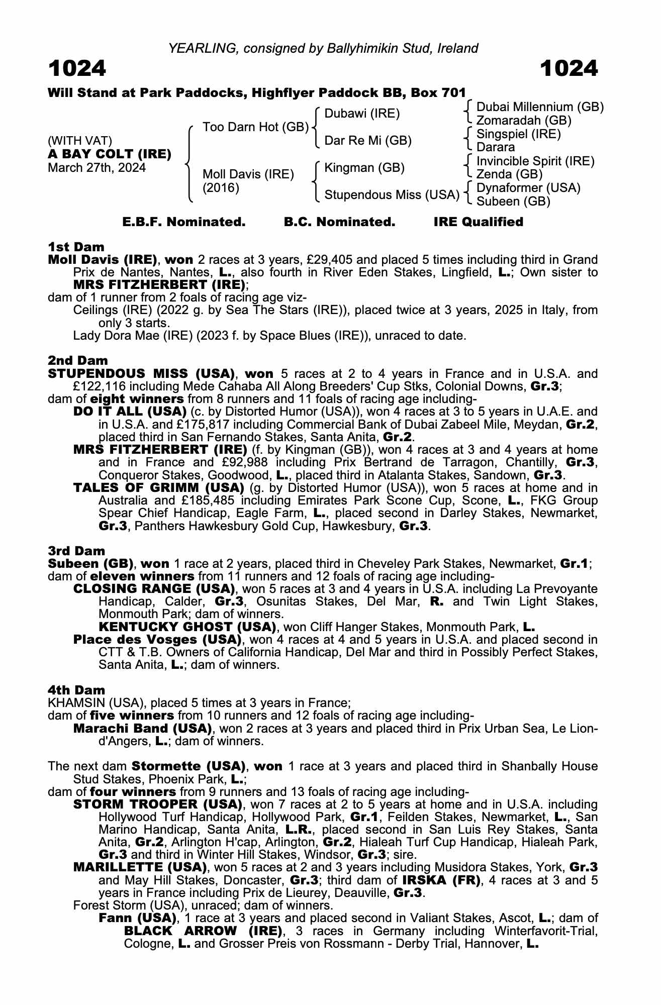 2024 B.C by Too Darn Hot (GB) ex Moll Davis (IRE)