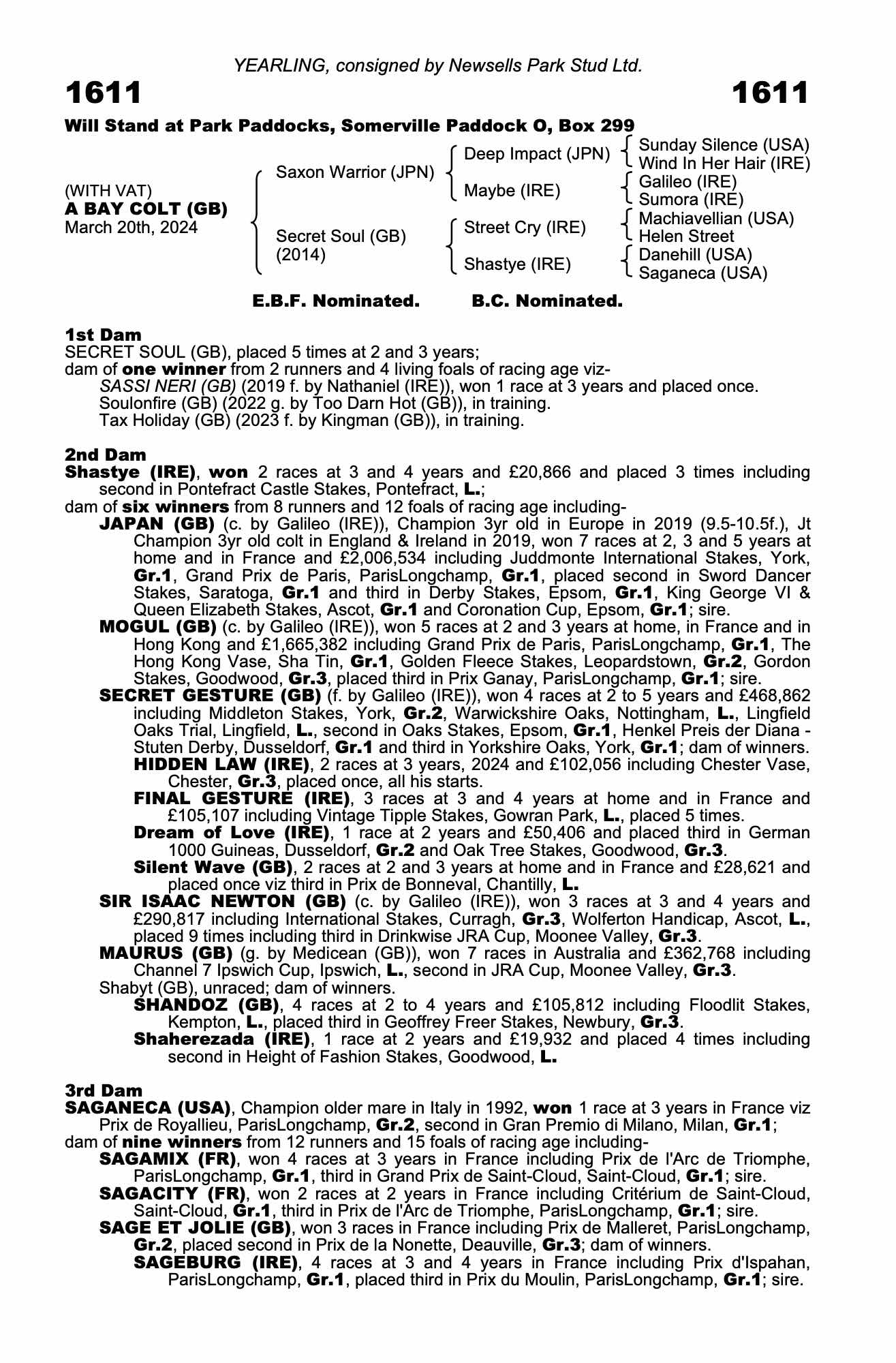 2024 B.C by Saxon Warrior (JPN) ex Secret Soul (GB)